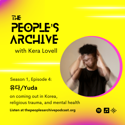Episode Overview: (Release Date: Thursday April 11, 2024) In the new release of the People’s Archive Podcast we share Yuda’s story of their queer experience and navigating their identity within layers of homophobia in South Korea. From coming out to attempts of forced conversion, Yuda’s story speaks to the struggles many queer people have in Korea within families, within churches, and within the broader community.